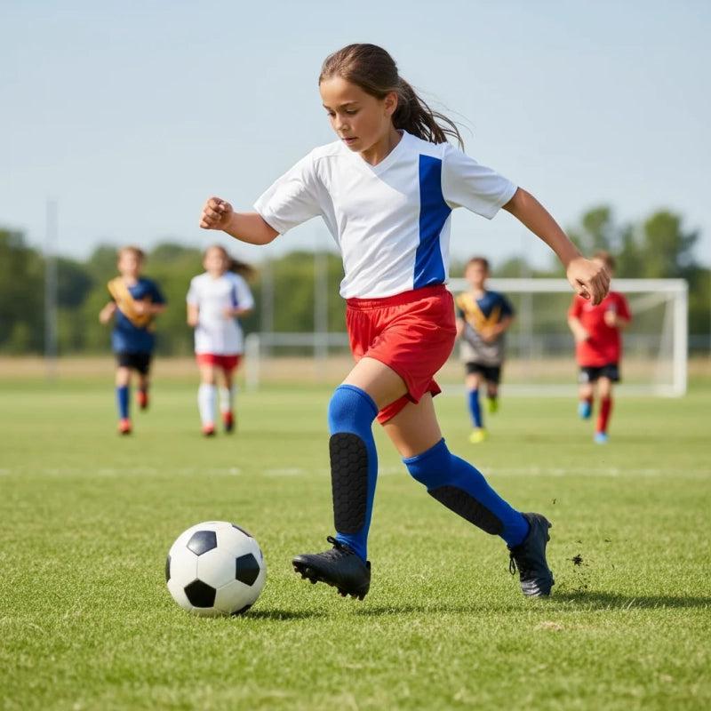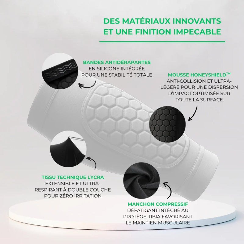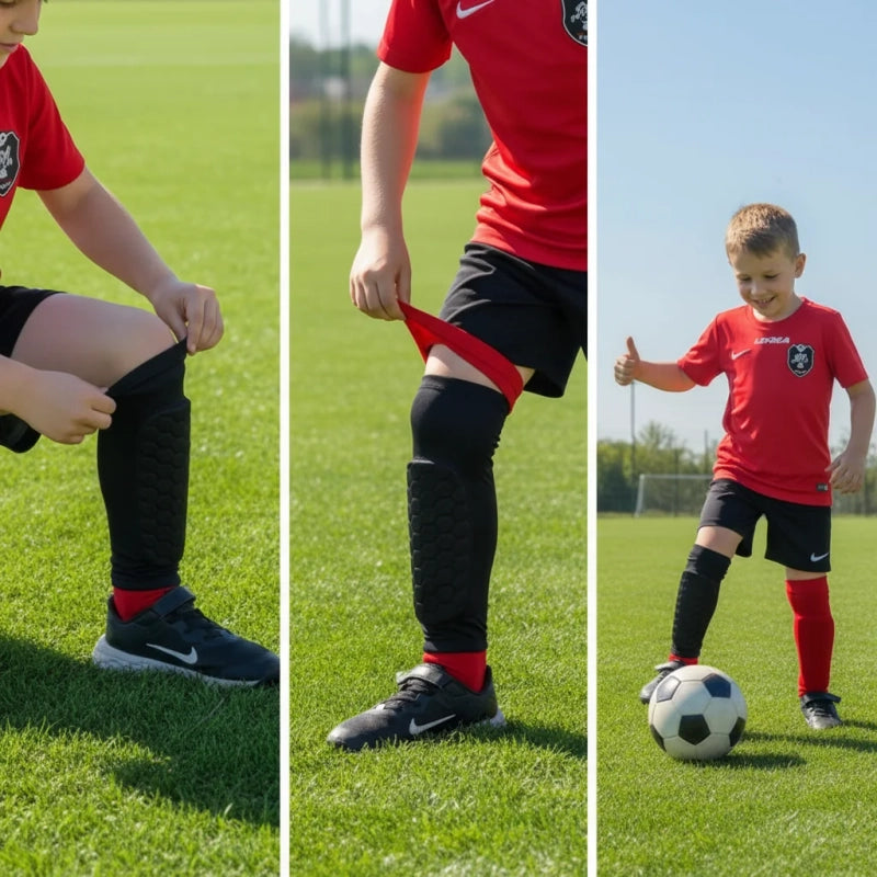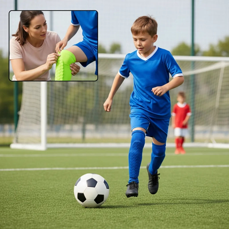 Ne laissez plus les coups ralentir vos champions. Avec les protège-tibias Honeycomb, vos enfants jouent à fond, et vous respirez !